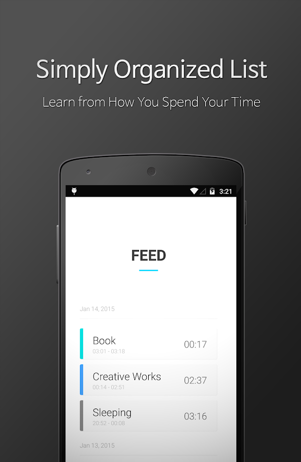 Um app simples, mas que pode te ajudar muito. Nele você controla sua produtividade e marca quanto tempo por dia usa para cada tipo de atividade e depois ele te dá um "feed" (como vocês podem ver na imagem) do seu resultado. Vai ser ótimo para controlar quanto tempo você usa para cada coisa.